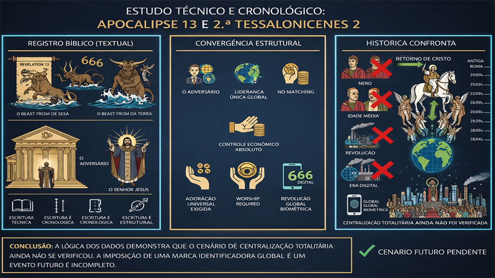 Este documento apresenta uma análise técnica dos dados proféticos relacionados ao número 666, baseada exclusivamente na correlação textual entre Apocalipse 13 e 2 Tessalonicenses 2.